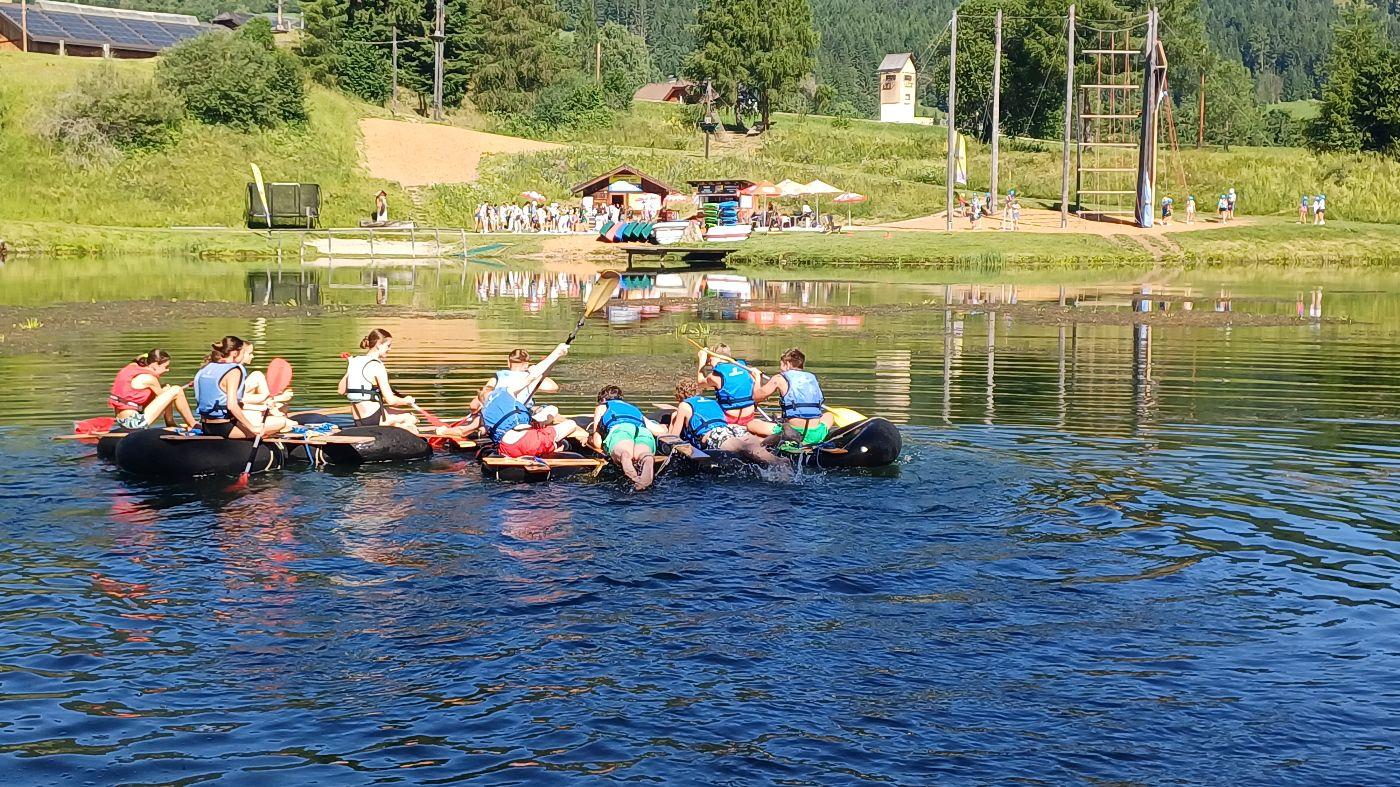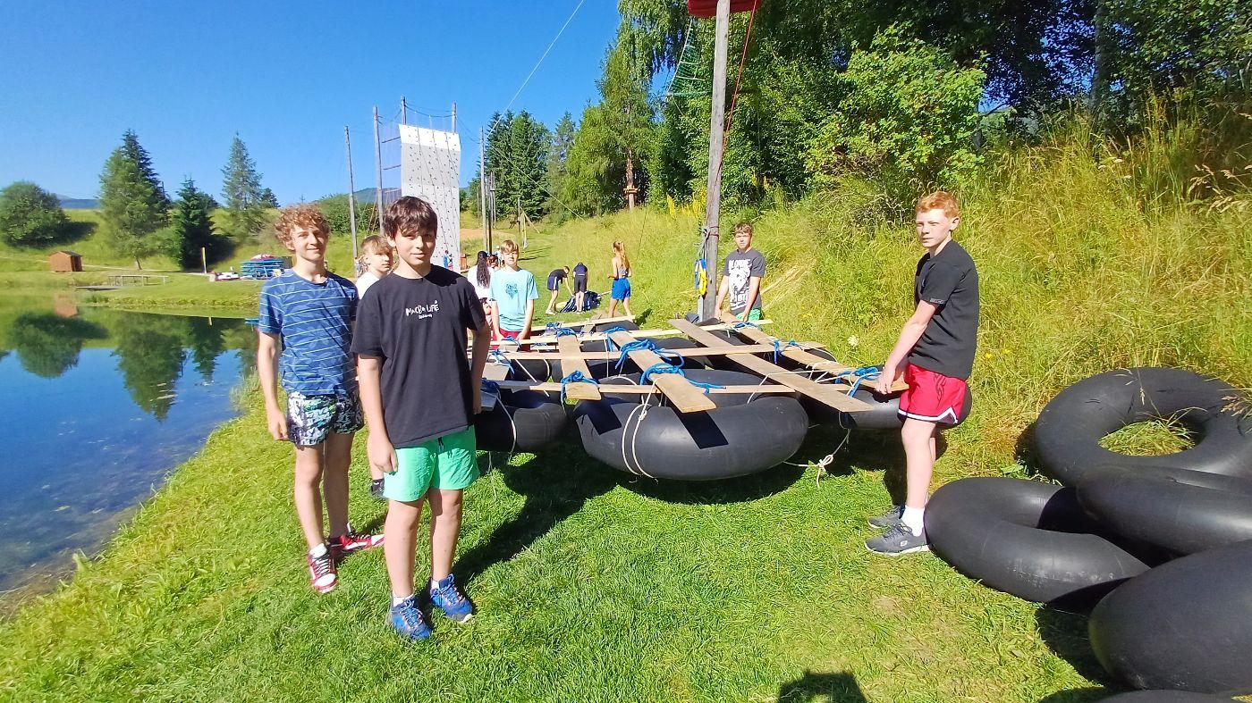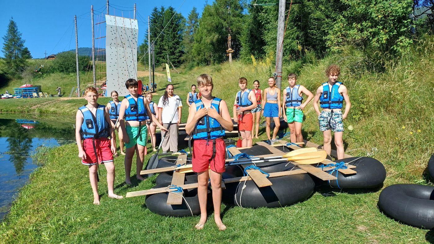 Ein besonderes Highlight war die gemeinsame Bewältigung der Himmelsleiter in Gruppen, sowie der Bau eigener Flöße – glücklicherweise blieben dabei alle mehr oder weniger trocken. Auch kulturell und sportlich wurde einiges geboten: Der Besuch der Burg Mauterndorf, Bogenschießen und entspannte Stunden im Freibad sorgten für viel Begeisterung.