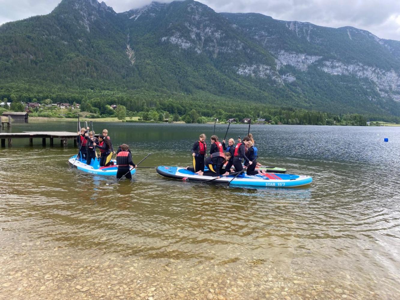 Der Wettergott meinte es gut mit uns und wir blieben fast die ganze Zeit trocken. Alle sportlichen Aktivitäten konnten nach Plan durchgeführt werden. Das Essen war richtig lecker und die Stimmung top. Neben Hochseilgarten, Rafting, Kajak, Adventure Trail, Survial, XXL Stand Up Paddle, Höhle und Wandern standen noch Marshmallows grillen am Lagerfeuer, Gesellschaftsspiele sowie ein Ausflug nach Bad Ischl am Programm. All in all: eine mega super „geile" Woche!